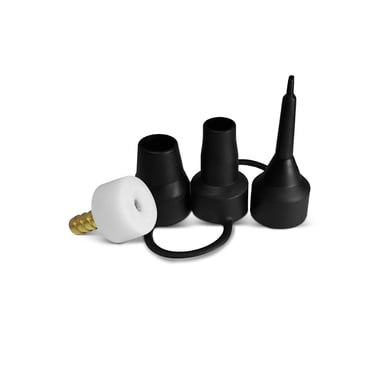 Use this 3/8" barb to inflatable adapter kit to fill floatation devices, air mattresses, and many other inflatables with various vaporous gasses (PROFESSIONAL USE ONLY), using affordable 3/8" ID vinyl tubing. Care MUST be taken to ensure all air has been purged from the inflatable device before gasses are injected inside (a vacuum pump or your lungs may be used for this application). This adapter kit MUST be sealed before use (temporarily or permanently) with putty, silicone, or glue.