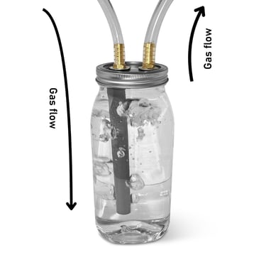 Multiple simple gas filters can be used in series if more filtration is needed. If the gas is intended to be compressed into a pressure tank, use of a gasometer tank (gas holder) after filtering is recommended for final filtration of gasses to allow the remaining contaminants to settle out of the gas over time. It is also recommended to dry the gasses before compression.