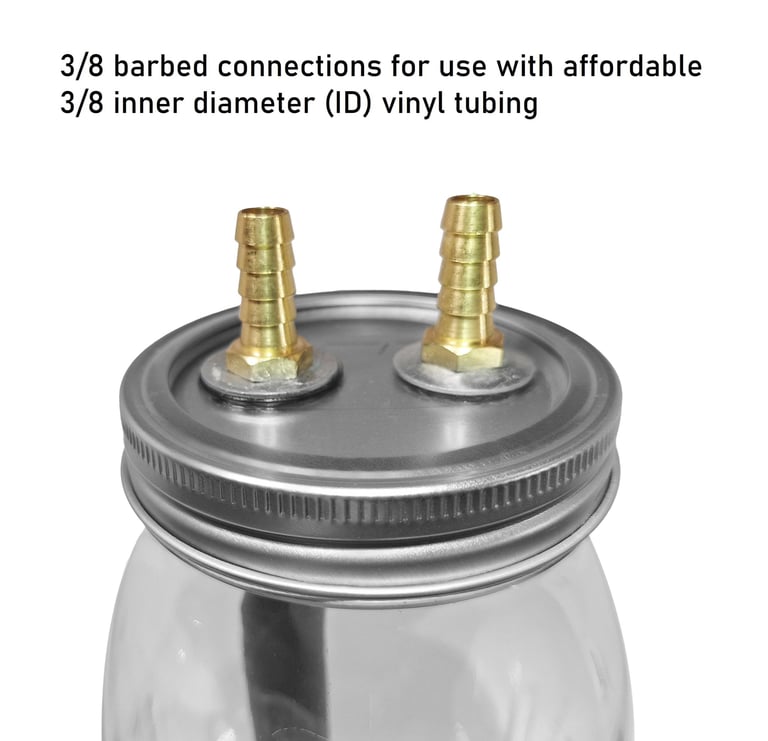 - 3/8 barbed connections for use with affordable 3/8 inner diameter (ID) vinyl tubing