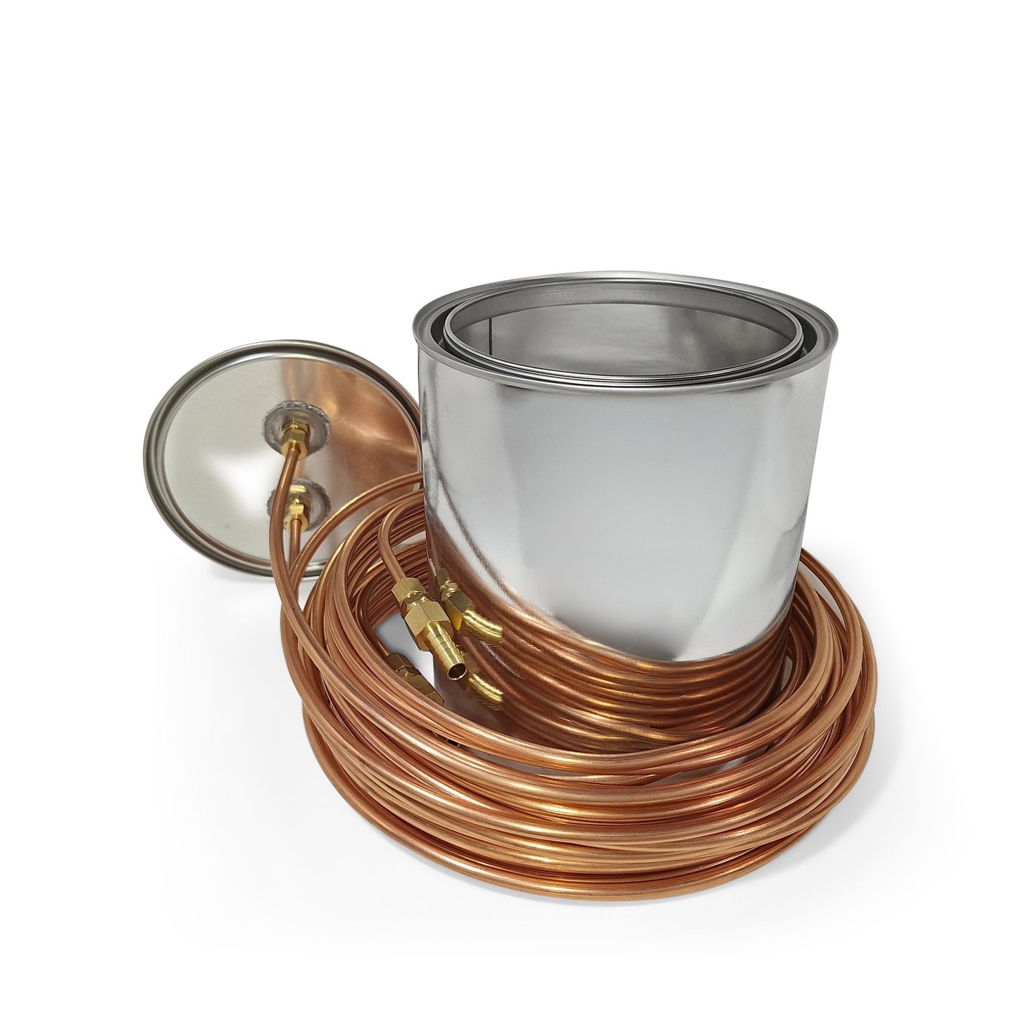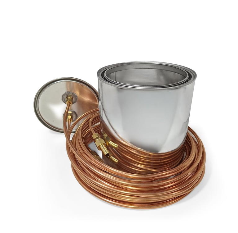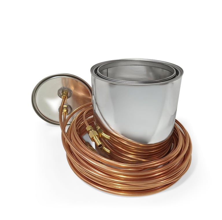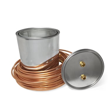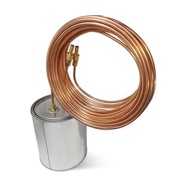 Place SABER into the center of your fire pit or onto a stove and carefully extend the copper tube, as to avoid kinks in the tube. If the tube is kinked by accident, simply bend both sides of the kink back into a straight position and use a pair of pliers to squeeze the tube back to a perfect round shape. Extended the copper tube at least a few feet away from the fire and direct a few feet, or several loops of the tube, through a bucket of water. The bucket of water will cool the gas to almost outside air temperature as it moves away from the high temperature chamber (add more of the copper tubing to the bucket of water if more cooling is needed). Then direct the copper tube out of the bucket of water and connect the brass fitting to a 3/8 inch inner diameter (ID) vinyl tube.